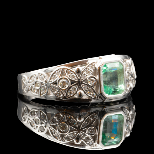 Floral Chevron Teal Sapphire and Diamond Pavé Engagement Ring