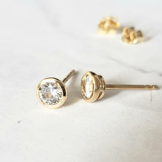 3mm Alexandrite Stud Earrings In Gold Bezel