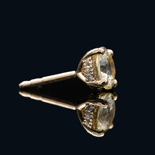 Yellow Sapphire Studs with Diamond Hidden Halo