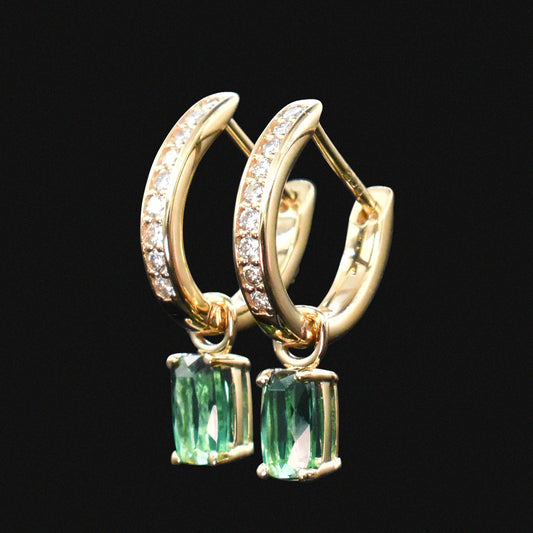 Diamond Huggies With Removable Tourmaline Birthstone Charms