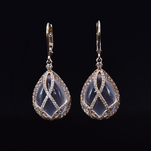 Rose Quartz Drop Earrings in 14K Rose Gold