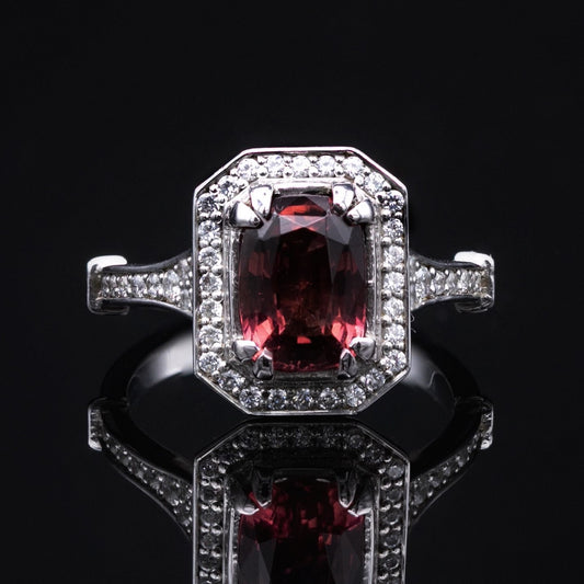 Pink Tourmaline Emerald Cut Art Deco Engagement Ring