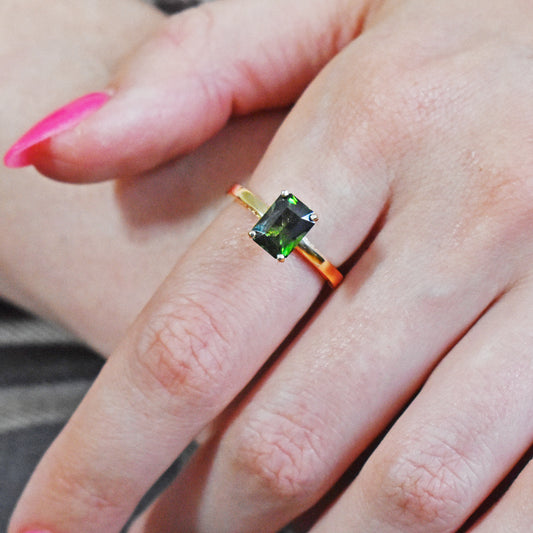 Emerald Cut Twisted Engagement Ring In Tourmaline
