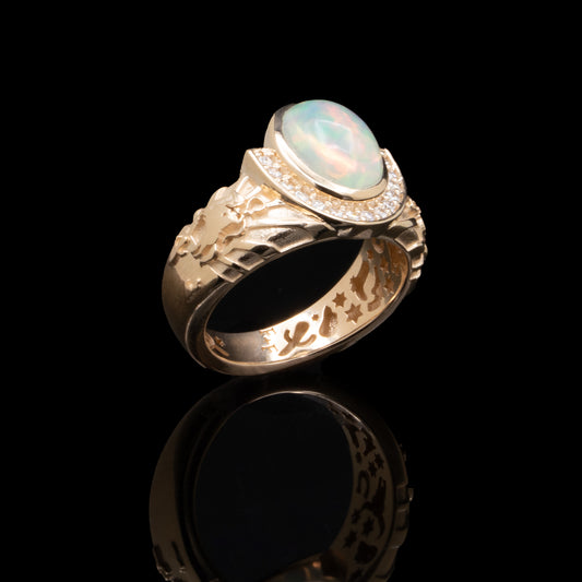 Opal & Diamond Horseshoe & Cowboy Ring - Western Collection