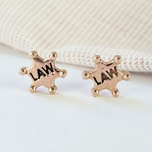 Sheriff Badge Stud Earrings In Gold -Wild Wild West Collection