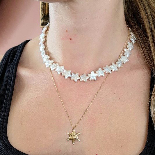 Sheriffs Badge Star Necklace In Gold & Diamonds- Women's Western Jewelry