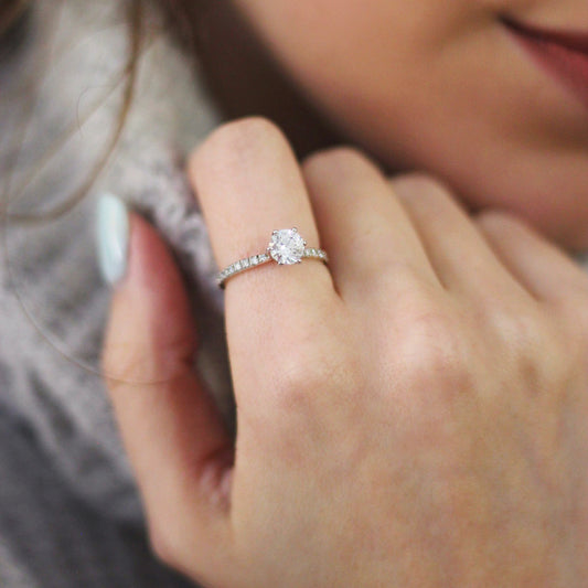 Bague de fiançailles diamant solitaire avec bande torsadée diamant
