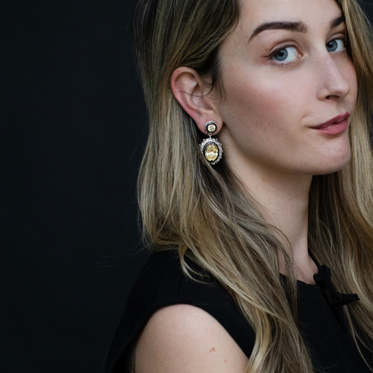 Yellow Sapphire Studs with Diamond Hidden Halo