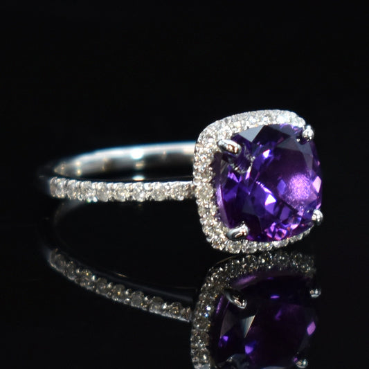 Cremation Ring With Ashes: Amethyst & Diamond Halo Ring