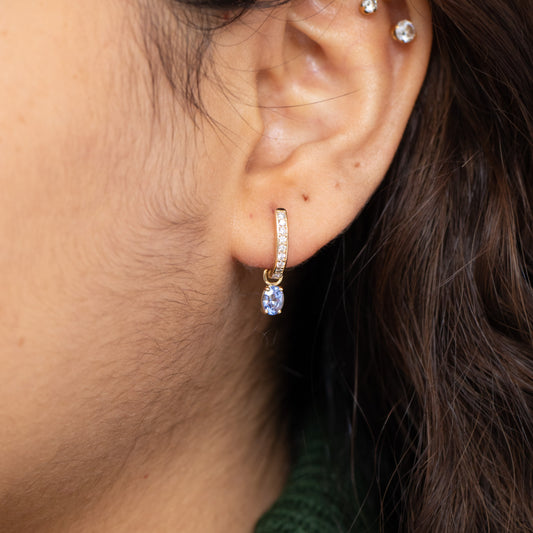 Diamond Huggies With Removable Lavender Sapphire Birthstone Charms