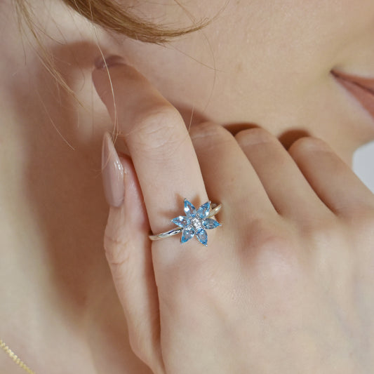 Ethical Teal Sapphire Engagement Ring With Diamond Marquise Side Stones