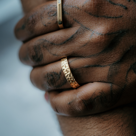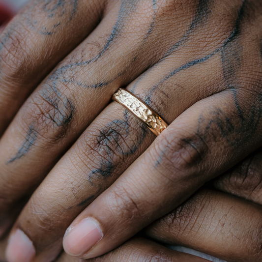 Beveled Edge Hammered Men's Wedding Band In Gold