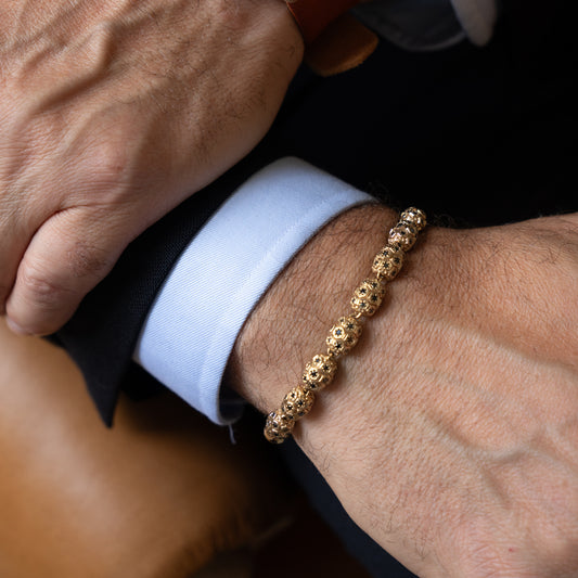 Men's Black Diamond Beaded Honeycomb Bracelet In Gold