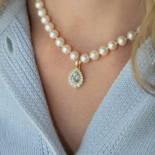 Aquamarine & Diamond Birthstone Necklace Cushion Cut