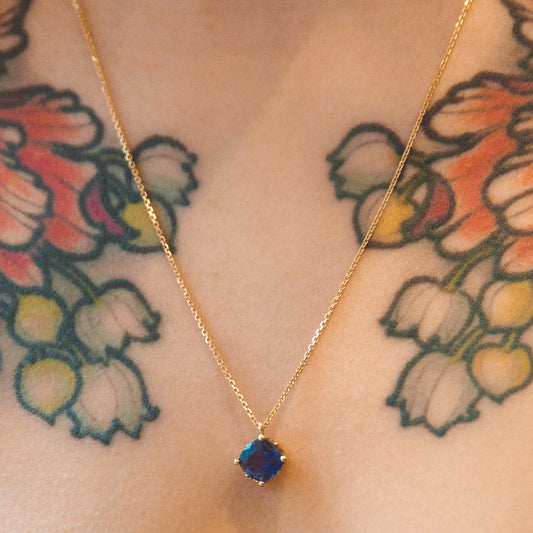 Cushion Cut Garnet & Diamond Necklace in Gold