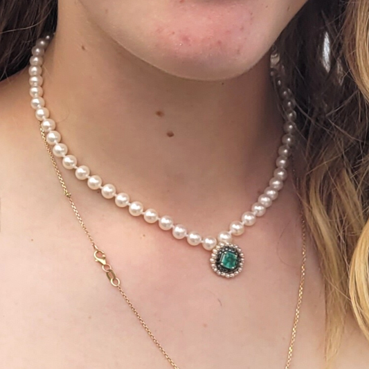 Emerald & Black Diamond Pearl Choker Necklace- One Of A Kind Series