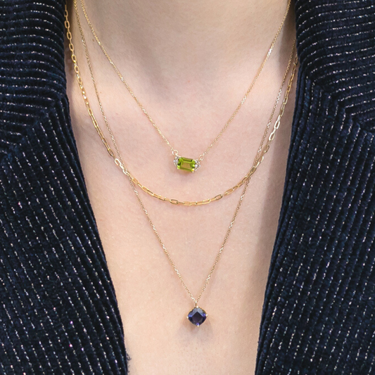 Emerald Cut Birthstone Necklace - Peridot Necklace